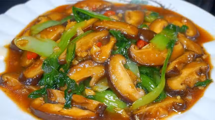 香菇油菜,這道素菜做法簡單,即使家裡有不愛吃蔬菜的孩子也會喜歡。