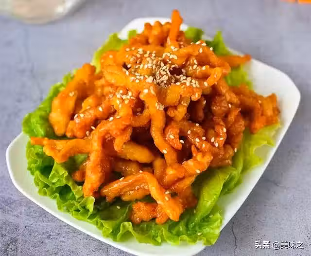 8、將炸好的肉絲倒入鍋中,充分拌均勻就好了。出鍋後放上熟芝麻點綴一下就可以上桌了。
