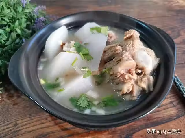 【羊肉燉蘿蔔】所需材料:羊脊骨1斤半、白蘿蔔半根、香菜1棵、鹽適量、蔥1段、姜1塊、料酒1湯匙、白鬍椒粉1茶匙、