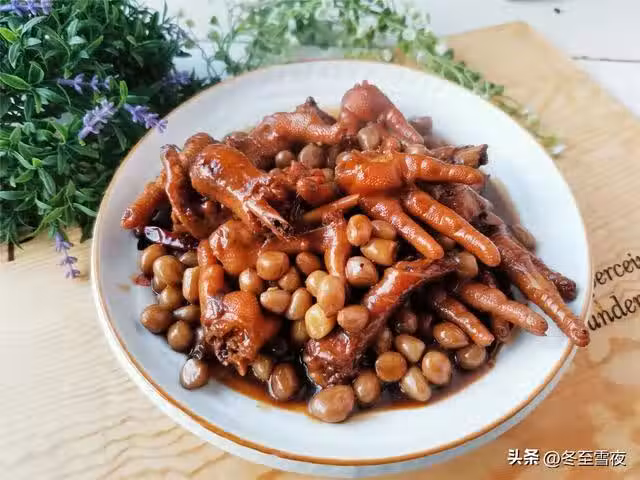 【雞爪燜花生】所需材料:雞爪500克、花生米200克、油鹽適量、蔥1段、姜3片、大蒜2瓣、花椒10粒、八角1個、料酒1湯匙、郫縣豆瓣醬1湯匙、紅燒醬油1湯匙、白糖1茶匙、