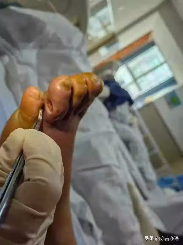 他有糖尿病,我嚇得讓他去鎮上醫院做了消毒和包紮,鎮醫院的醫生害怕他得糖尿病足,讓他早點去大醫院住院治療。