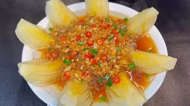把醬汁澆在粉絲上面和娃娃菜的空隙中,大火蒸8分鐘即可