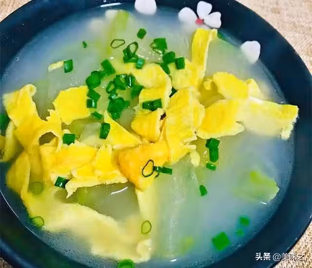 冬瓜300g、雞蛋2個、蔥花適量、芡實30g、茯苓20g、雞粉少許、鹽適量、料酒3勺、姜4-5片、蝦粉半勺。