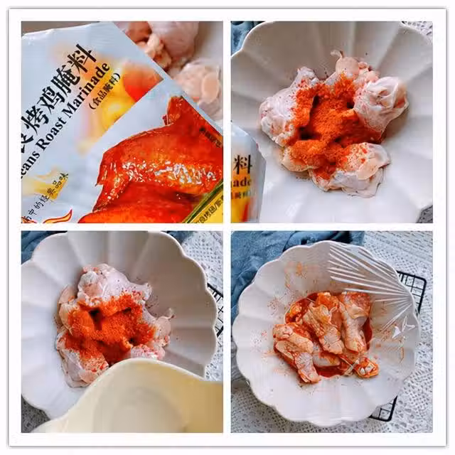 4、雞腿腌制好之後準備空氣炸鍋,這也是雞腿好吃的關鍵,空氣炸鍋不用一滴油,在烹飪的過程中還能逼出多餘的油脂,讓雞腿吃起來沒那麼油膩,把雞腿放進墊了油紙的空氣炸鍋中,我是先選了15分鐘,溫度是200度;