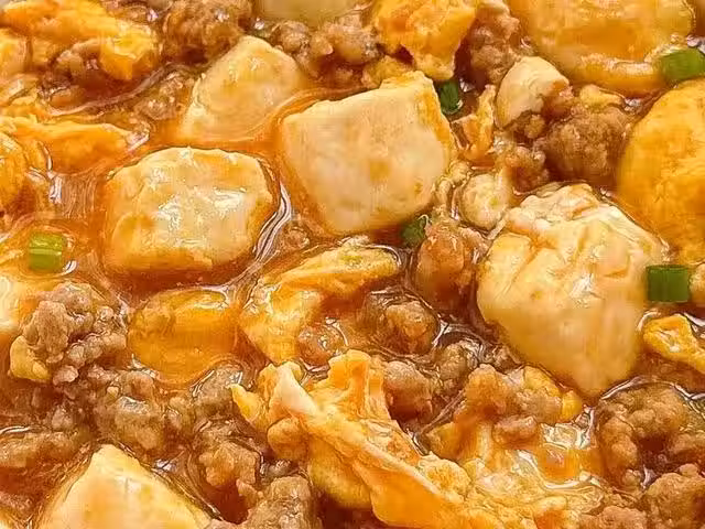 5、再放入肉末,翻炒至醬汁濃稠,撒上蔥花即可出鍋裝盤開吃。