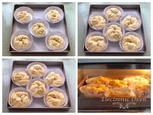 5、如果沒有麵包紙托,可以將麵包生胚直接放進烤盤中進行烘烤。