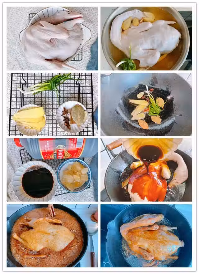 6、鹵到醬汁變得濃稠可以轉小火,再加少許冰糖,這個時候加冰糖能讓鴨子表面的顏色更加油亮,往鴨子身上潑上醬汁,再煮5分鐘,江浙滬的滷鴨口感是偏甜的,所以糖一定要給足;