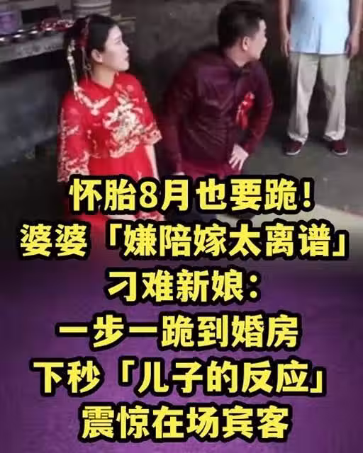 懷胎8月也要跪!婆婆「嫌陪嫁太離譜」刁難新娘:一步一跪到婚房 下秒「兒子的反應」震驚在場賓客!