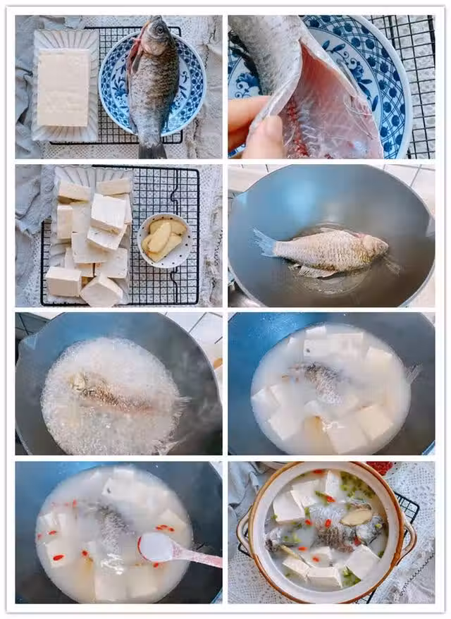 5、煮好之後,關火出鍋,撒上少許蔥花點綴,好吃的鯽魚豆腐湯就做好了;顏色奶白,口感清淡味道鮮美,沒有腥味,非常好喝;