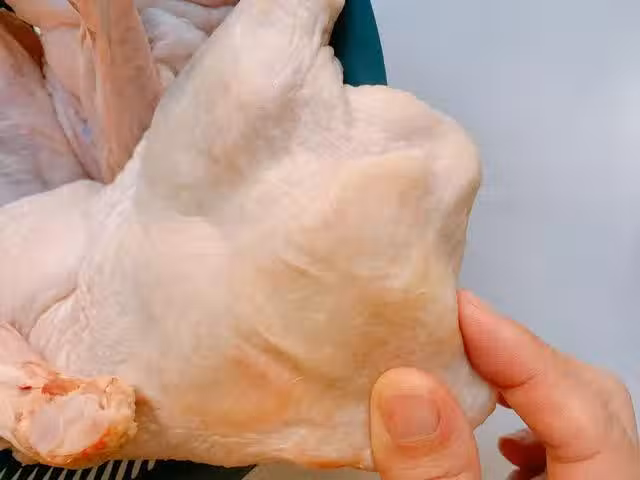 4、晾乾水分的鴨肉表面塗上少許白酒,白酒建議用高濃度白酒,正反兩面都抹上一些,能起到防腐殺菌的作用,塗抹上白酒之後先放在一邊備用。