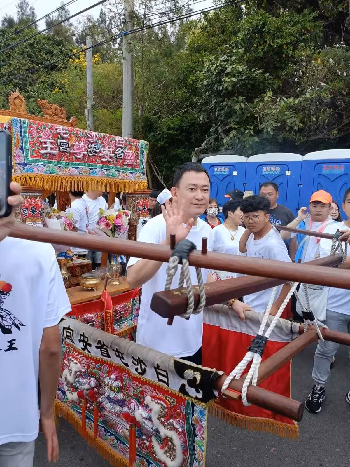 事實上,過去王識賢也曾參加白沙屯媽祖進香活動,更擔任扛轎的角色,
