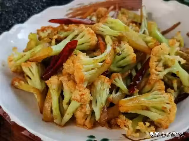 【干煸花菜】所需材料:菜花半棵、油鹽適量、蔥1段、姜2片、大蒜2瓣、花椒20粒左右、生抽1湯匙、白糖1茶匙、