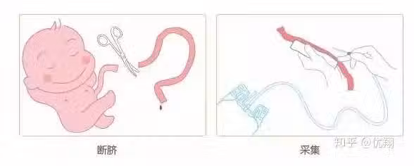 臍帶血的採集是在新生兒出生以後,取嬰兒端3-8cm臍帶儲兩把止血鉗結紮、斷臍,嬰兒被抱走處理,貼近母端止血鉗處消毒並將針頭插入臍靜脈,採集臍血。臍血採集不同於傳統的骨髓採集,不需要進行麻醉,無痛、無副作用胎盤和臍帶原本在胎兒出生後,就是作為廢物扔掉的,臍血採集是在胎盤、臍帶與母體和胎兒完全分離以後進行的,因此對母親和孩子沒有任何不良影響,屬於「廢物利用,變廢為寶」。