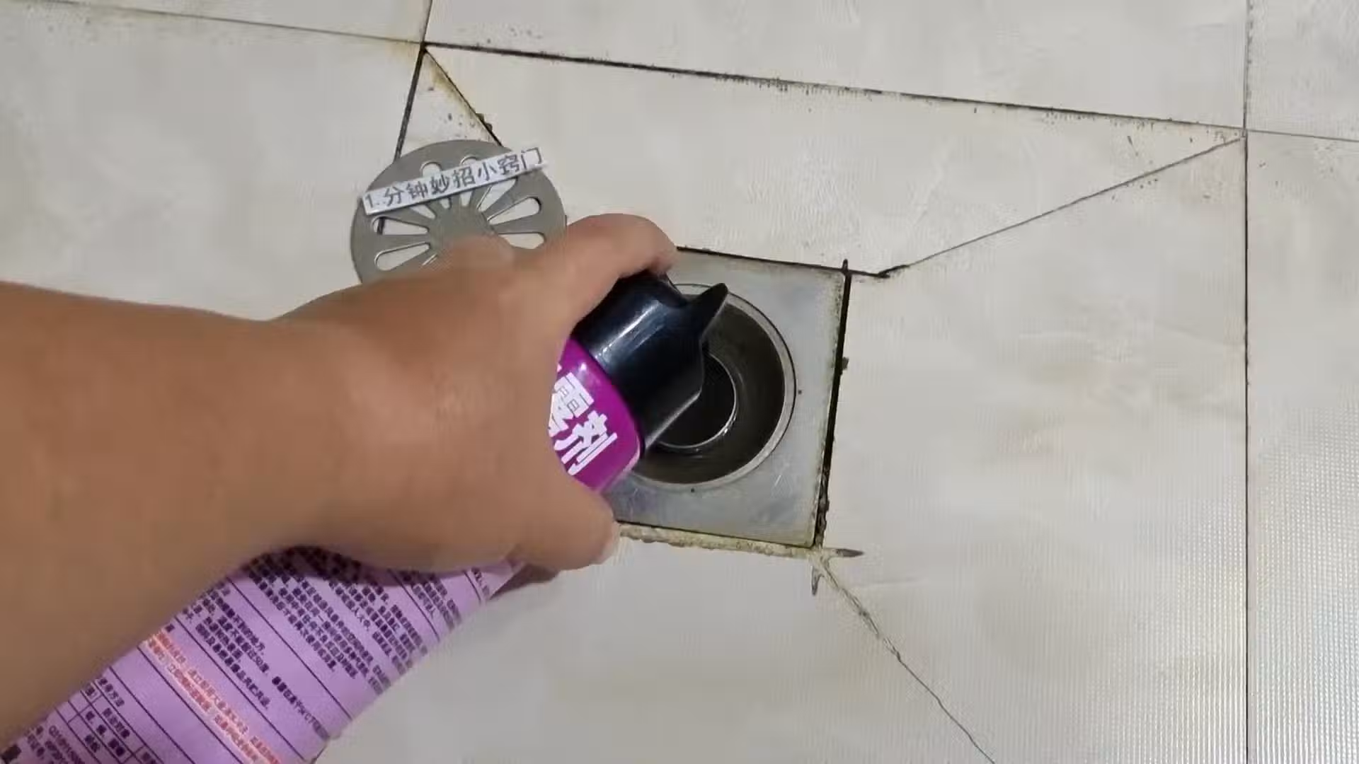 3.噴好了之後,我們立馬用塑料袋把地漏口給蓋住,然後用地漏蓋按壓住塑料袋,蓋個半小時左右,讓裡面的噴霧氣體,驅趕或者消滅下水管道裡面的小飛蟲。