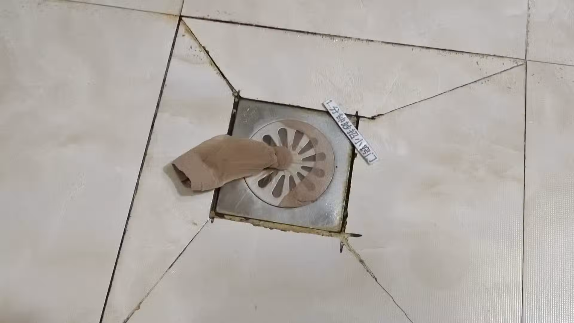 8.而且像平時,我們在洗澡,放水的時候,經常會有一些異物,或者頭髮絲會掉落到下水道裡面,現在,我們在地漏口裝了絲襪之後,就可以起到過濾的作用,把這些異物都攔截下來了。而且絲襪上面的孔洞,雖然細密,但是也不會影響到水流的正常排水,用這個方法來處理小飛蟲,衛生間裡面就再也不會有小飛蟲了,方法還是比較實用的。