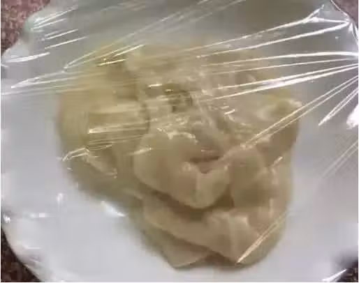 8. 放入芒果,收口捏住(象包包子一樣,然後揉圓)