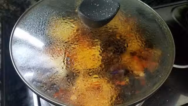 8.時間到了之後,開蓋,倒進少許的水澱粉勾一點薄芡就可以出鍋了。