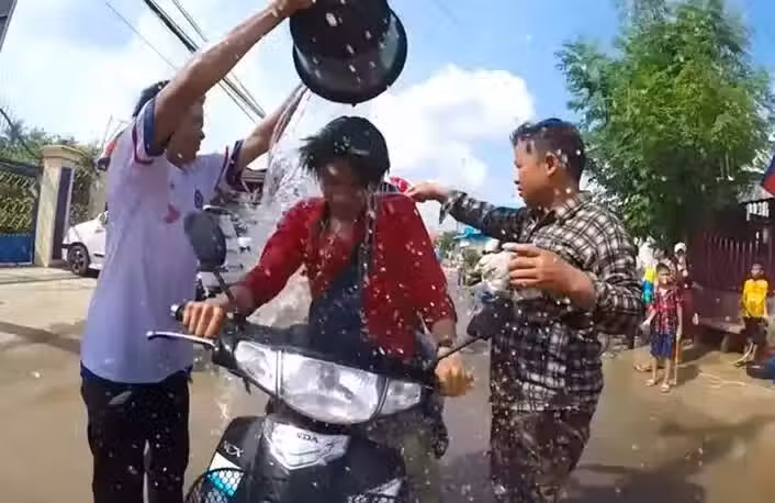 「Chaul Chnam Thmey」是柬埔寨人的長假,然而與泰國或寮國不同的是,柬埔寨人不像他們那樣瘋狂地潑水。如果你在宋干節期間去柬埔寨旅遊,你可能只會在馬路上看到一些人潑水。柬埔寨人潑水時通常會使用白色、紅色或粉紅色的麵粉與水混合後往臉上塗。