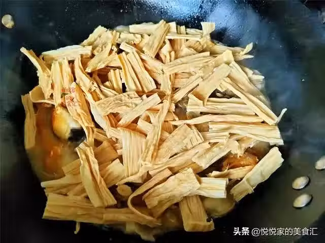 最後再把腐竹倒入鍋中,蓋上蓋子繼續燜5分鐘,再次拌勻撒上蔥花就可以關火出鍋了。如果是用砂鍋做的話,就連著砂鍋一起端上桌,熱氣騰騰香噴噴的一大鍋,豐盛極了。