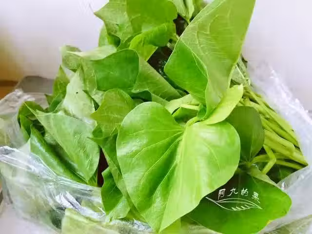第一步:將地瓜葉進行擇分,保留葉子和嫩莖掐成小段,把底部較粗的根莖丟掉,這個部位口感特差,不建議嘗試。