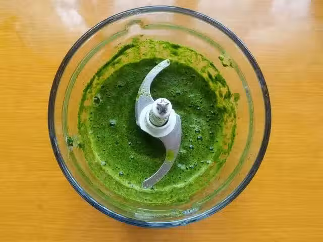3、將攪打好的菠菜汁,過濾40克出來,今天的配方,只用到40克就行,剩餘的菠菜汁大家可以用來饅頭、麵餅、涼皮都可以,不浪費。