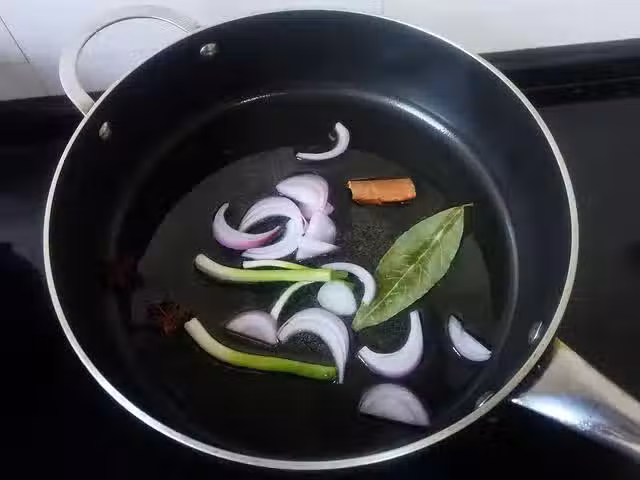 4、炸到鍋內的食材有些焦黃後,將其撈出撇掉,留下油的部分