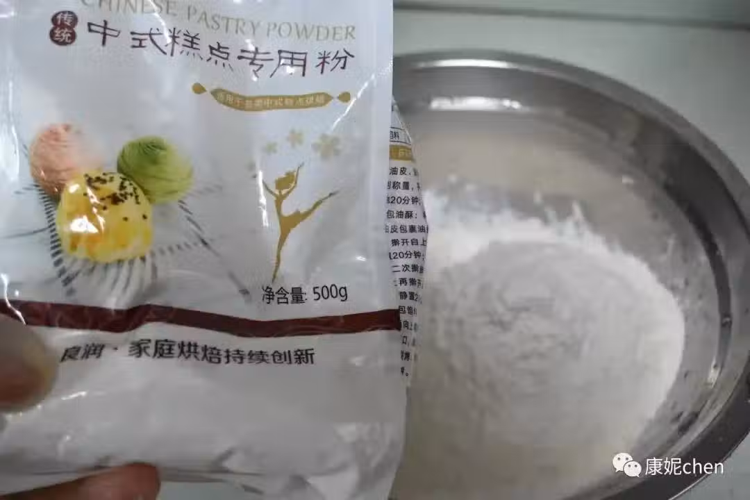 第三步 把中筋麵粉放入大容器,小麥澱粉和中筋麵粉攪拌均勻。中筋麵粉一般用來做饅頭、包子等中式麵食,我用了中式糕點粉。