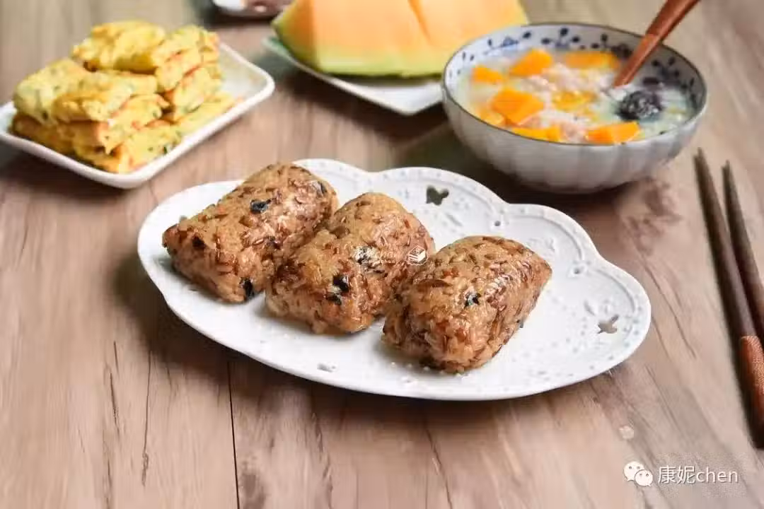 【雜糧飯糰材料】糙米80克,紅米30克,黑米20克,腊味100克,蝦米30克,生抽適量。