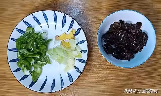 【步驟三】:鍋中添上清水,大火燒開放入一勺鹽,放入豆腐和木耳,大火燒開煮2分鐘,把木耳和豆腐焯一下水。