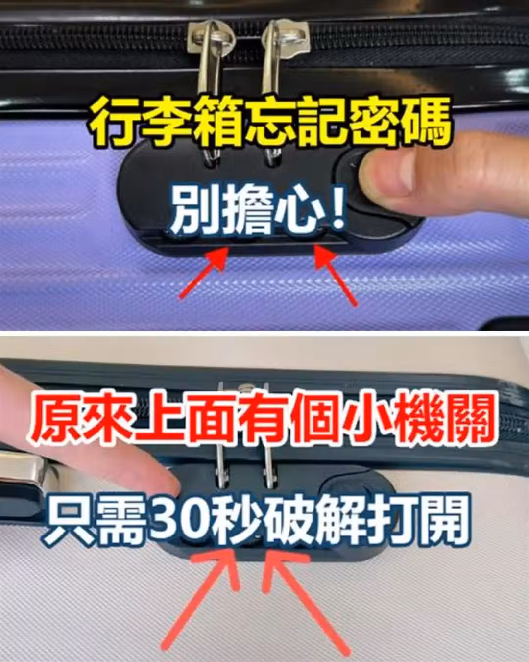 行李箱忘記密碼,別擔心!原來上面有個小機關,只需30秒破解打開
