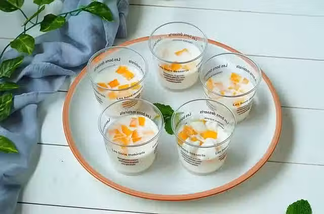 2、將裡面的水果粒換成您喜歡的西瓜、草莓、蔓越莓。。。就可以變換出各種不同的水果奶凍啦,細膩爽滑,清涼解暑,夏天給孩子做做吧,今年夏天,不用再買冰激凌啦。