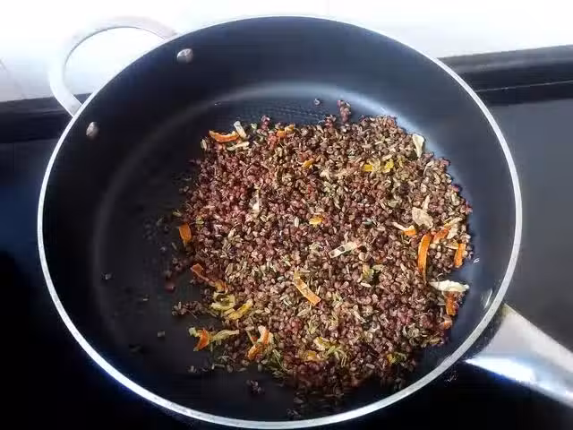 4、當香料水分炒干後,我們倒入鹽,繼續用小火來炒,炒到食鹽有點略微發黃就可以熄火了。