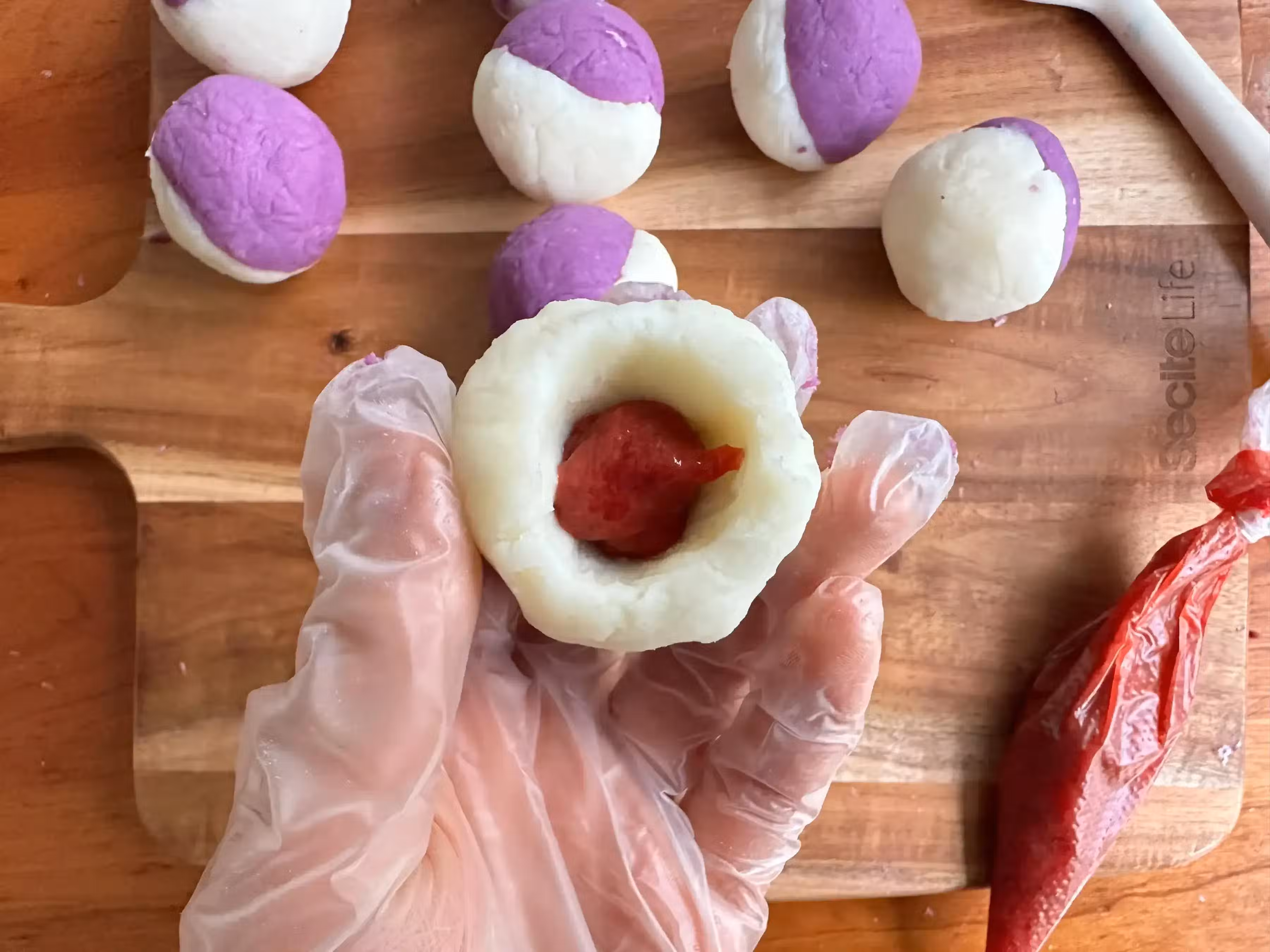 7、放入50克的月餅模具里;模具可以提前刷一點食用油防粘。