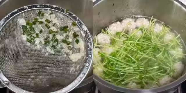 5、出鍋撒點枸杞,淋點香油!這個好喝的豌豆苗肉丸湯就完成了。真的很鮮很爽口!
