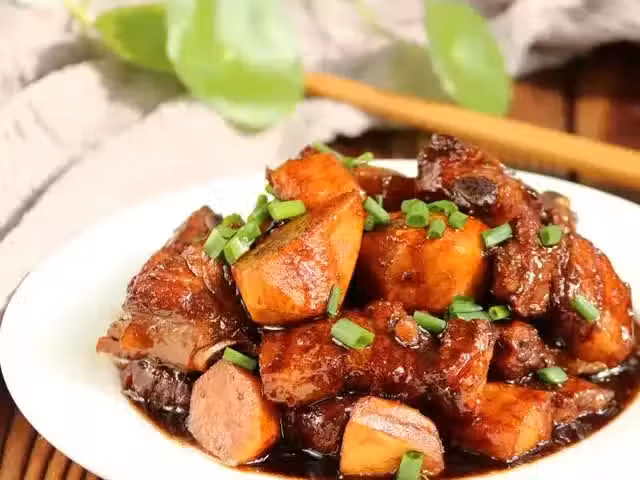 這道菜是用五花肉和茨菰一起燒的,我們燒紅燒肉還是習慣了這種顏色,如果你不喜歡顏色太深,可以減少老抽的用量,這道菜看似濃油赤醬,其實味道是咸鮮中帶有一絲的甜味。詳細做法;需要的食材;五花肉750克茨菰350克生抽4湯匙老抽2湯匙冰糖20克生薑少許料酒30毫升蔥花少許八角少許