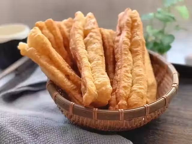 關於油條的叫法各地也是不一,華北地區多稱為「餜子」,南方的地區又叫「油果子」、「油炸鬼」等,做法基本都是相同的。炸油條時為什麼油條能迅速浮起、膨脹呢?油條胚子放進油鍋中,小蘇打受熱產生氣體。那麼油條怎麼才能炸的又松、又脆、又香呢?記住這一點,將兩條上下疊好,用筷子在中間壓一壓,但不要太用力,兩塊面片的邊緣絕不能粘在一起,雙手捏兩頭的時候,手要輕輕地捏緊中間部分,炸的時候兩條不分離就可以了。