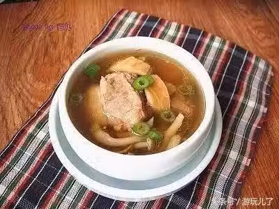 做法: 1.排骨洗凈,放入冷水鍋中焯燙去除血沫,撈出後,放入另一鍋清水中,放入生薑一塊、蔥一棵和八角一顆,大火燒開,小火燉煮2個小時,製成排骨湯。