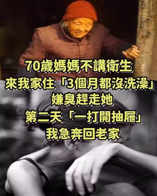 70歲媽媽不講衛生!來我家住「3個月都沒洗澡」嫌臭趕走她,第二天「一打開抽屜」我急奔回老家~