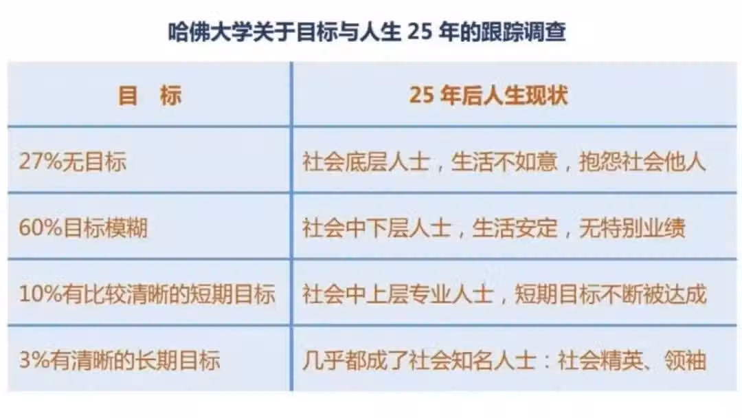 哈佛大學做過一個關於目標對人生影響的調查,結果發現:有目標的人和無目標的人,過著截然不同的人生。