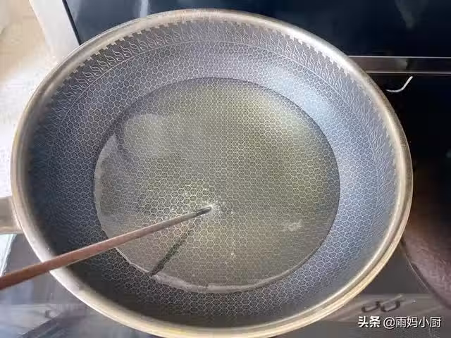 10、把團好麵糰,依次放入油鍋里,用筷子翻動推開,防止粘連。