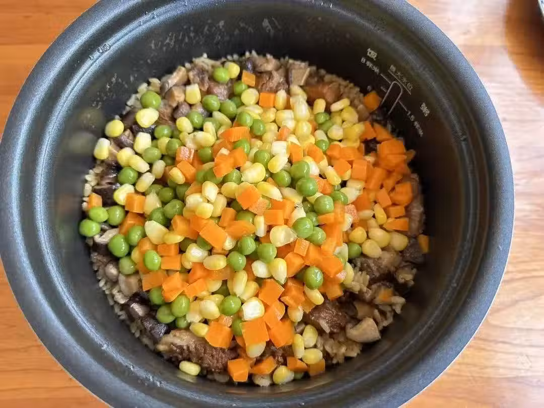 7、這個排骨燜飯真的太有食慾了,小朋友吃飯的速度直接比平常快了一倍!配菜可以多加一點,這樣葷素搭配,好吃不膩更健康!