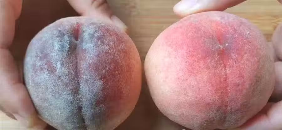 桃子的顏色是挑選的第一步。許多人認為越紅越好,但其實正常的桃子掛在樹上都有陰陽面,顏色不均勻並不代表不成熟。這是因為陽光照射的位置不相同,所以果皮分布的顏色就會不均勻。正確的方法是要注意桃子的成熟度,通常,成熟的桃子顏色會稍微帶有一些黃色,這表示果實已經充分成熟,味道更甜。