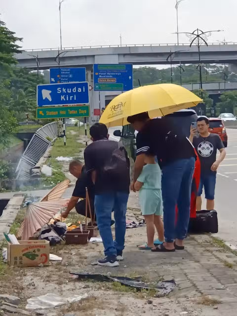 (新山2日訊)「車墜溝,奪3命」案中喪命的朱家姐弟其家屬,於今日上午前往車禍事故現場進行招魂儀式,死者朱婉柔的5歲兒子也在場招喚母親的亡魂,令旁人見之心酸。