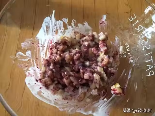 2、加入酸奶、藍莓醬拌勻,酸奶要選那種比較稠的酸奶,藍莓醬最好自己用鮮果製作,要買也要選那種無添加的藍莓醬,雖然貴點。