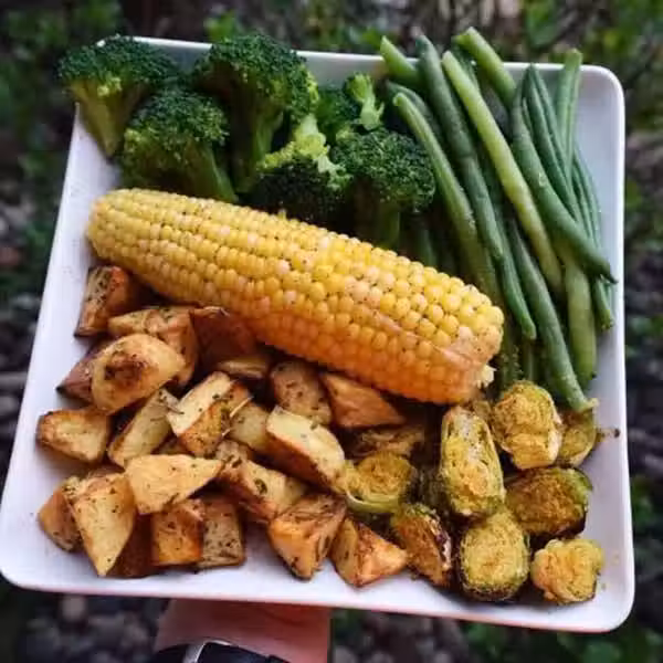 午餐: 水煮玉米+水煮花椰菜+水煮四季豆+烤球芽甘藍+烤地瓜
