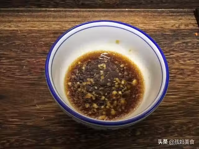 9、小碗里加米醋、醬油、蚝油、香油和少許水調和均勻成蘸料。