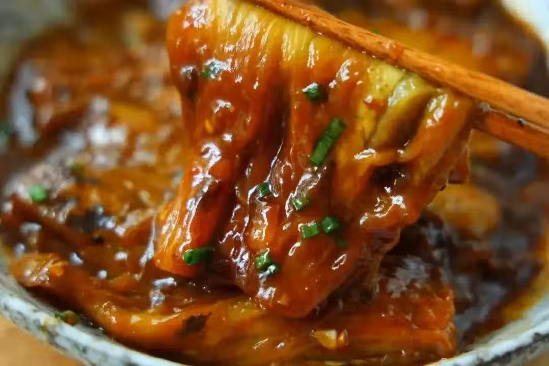 茄子的綿軟與醬汁的醇厚交織在一起,形成了一種難以言喻的美妙口感。茄子在烹飪過程中吸收了醬汁的精華,變得既嫩又滑,每一口都仿佛能品嘗到醬汁的甘甜與茄子的鮮美。而那濃郁的醬香,更是讓人回味無窮,仿佛置身於美食的海洋中。