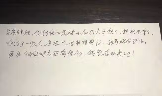 回到家後莉莉把孩子安頓好後就去收拾孩子的衣服,準備給女兒沖奶粉,打開奶粉蓋時,頓時傻了眼,裡面放著她給嫂子的銀行卡和一張紙條,紙條上面寫著:弟弟妹妹,你們的心意嫂子和你大哥領了,錢就不拿了,咱們是一家人,應該互相扶持幫忙,孩子現在還小,要花銷的地方還有很多,錢就存起來吧。