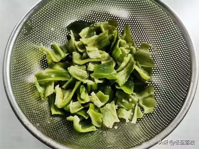 2.再把青椒用手掰成大小均勻些的塊,辣椒籽不要。