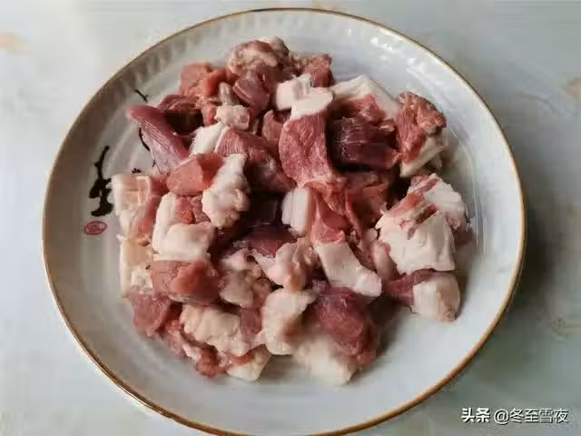 2.把羊肉洗凈,瀝凈水分,再把羊肉切成塊。不要太大塊,不容易熟。